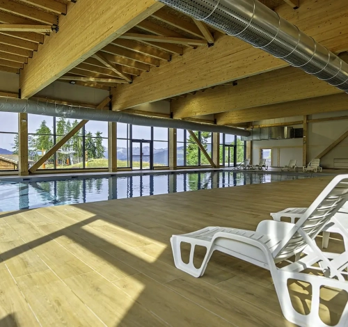 Se réchauffer en plongeant dans l’eau chaude de la piscine d'intérieur, c’est ça le bonheur pendant les vacances à la montagne ou ailleurs. Et pourquoi pas, en plus, aller faire un tour aussi à l’espace forme ?